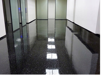 Наносимо покриття в кілька шарів, формуючи рівну, безшовну та гігієнічну поверхню, готову до експлуатації.